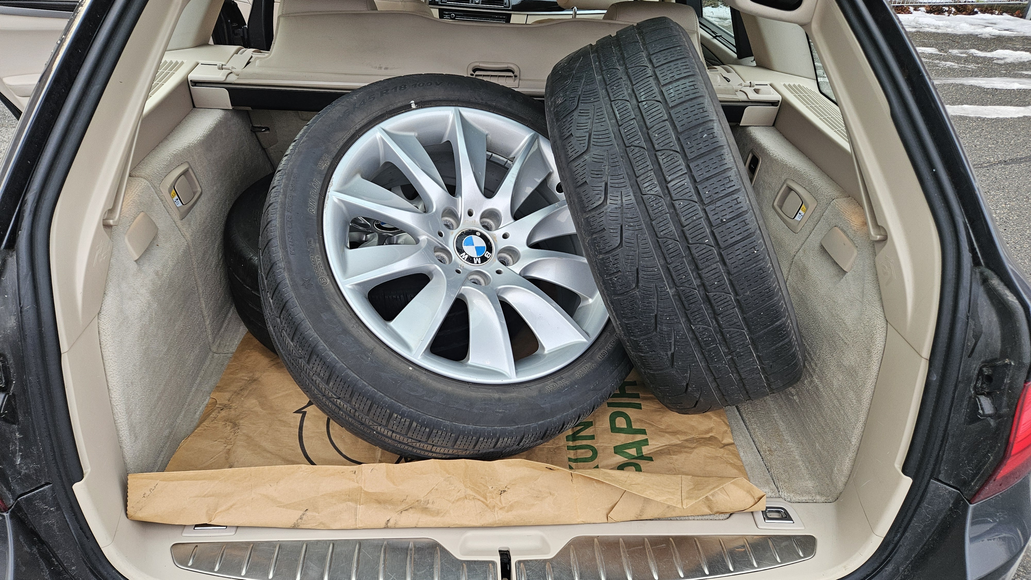 Výbava BMW 530xD Modern Line kombi 4x4 190 kW: ABS, ESP, ASR, aktivní ochrana chodců, asistent rozjezdu do kopce, parkovací asistent, kamery i senzory, tempomat, automatická klimatizace, automatická převodovka, automat. ovládání zadních výklopných dveří, start/stop systém, navigační satelitní systém, multifunkční nastavitelný volant, bezklíčkové ovládání, palubní PC, el seřiditelná a nastavitelná sedadla s vyhříváním, kožené potahy, sedadlo řidiče s pamětí, střešní nosič, regulace podvozku se vzduchovým odpružením, sada náhradních kol.