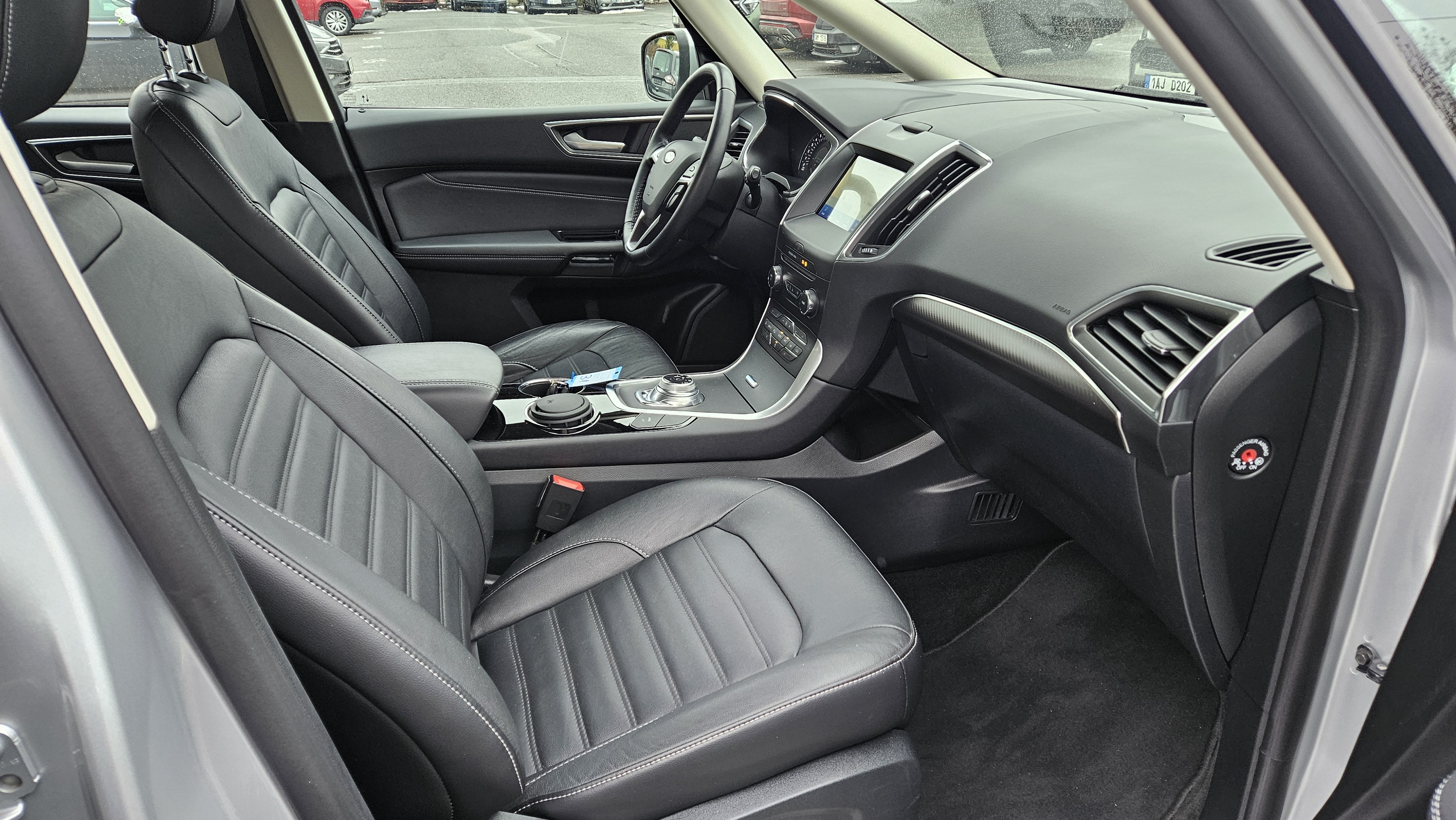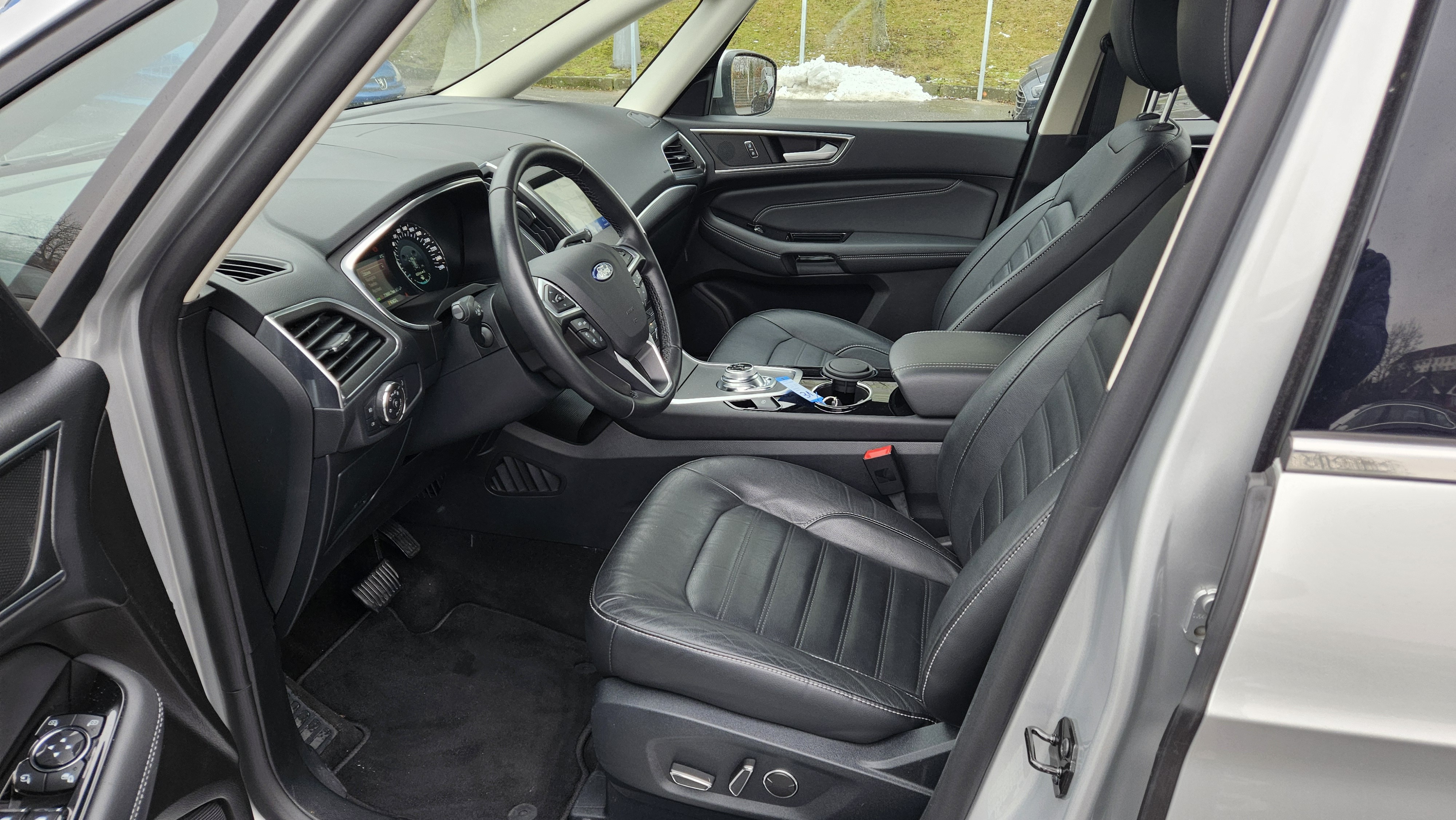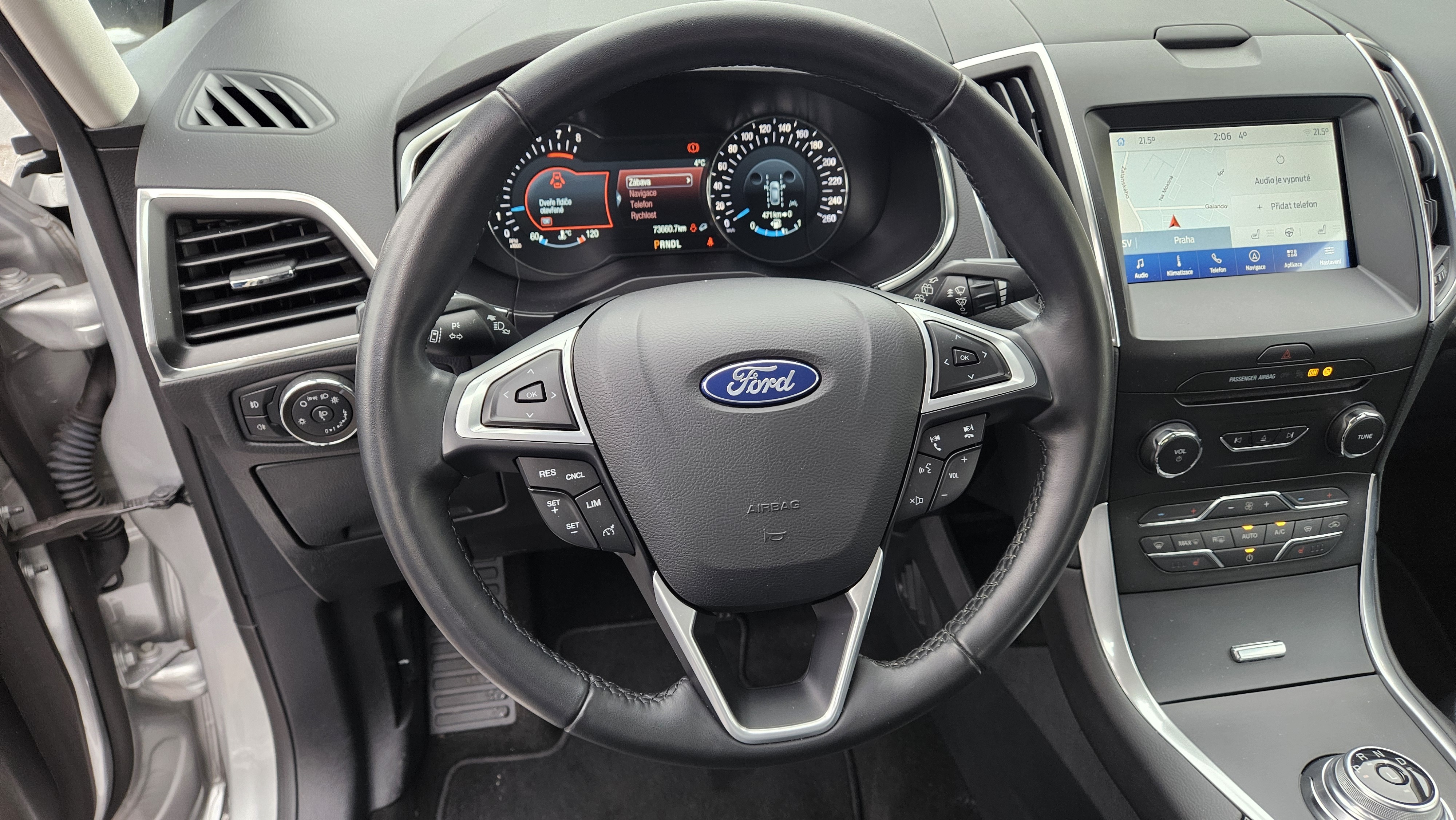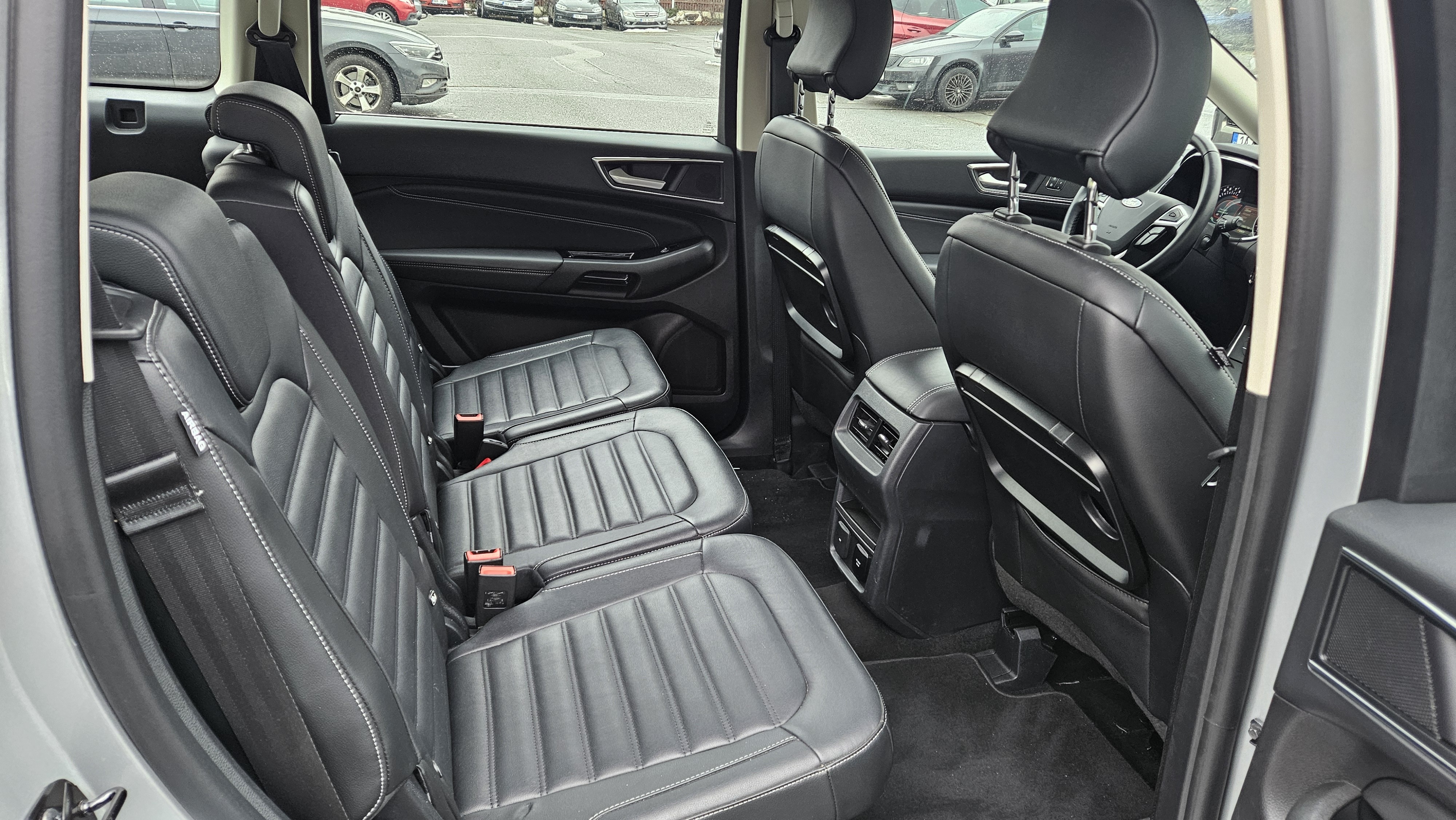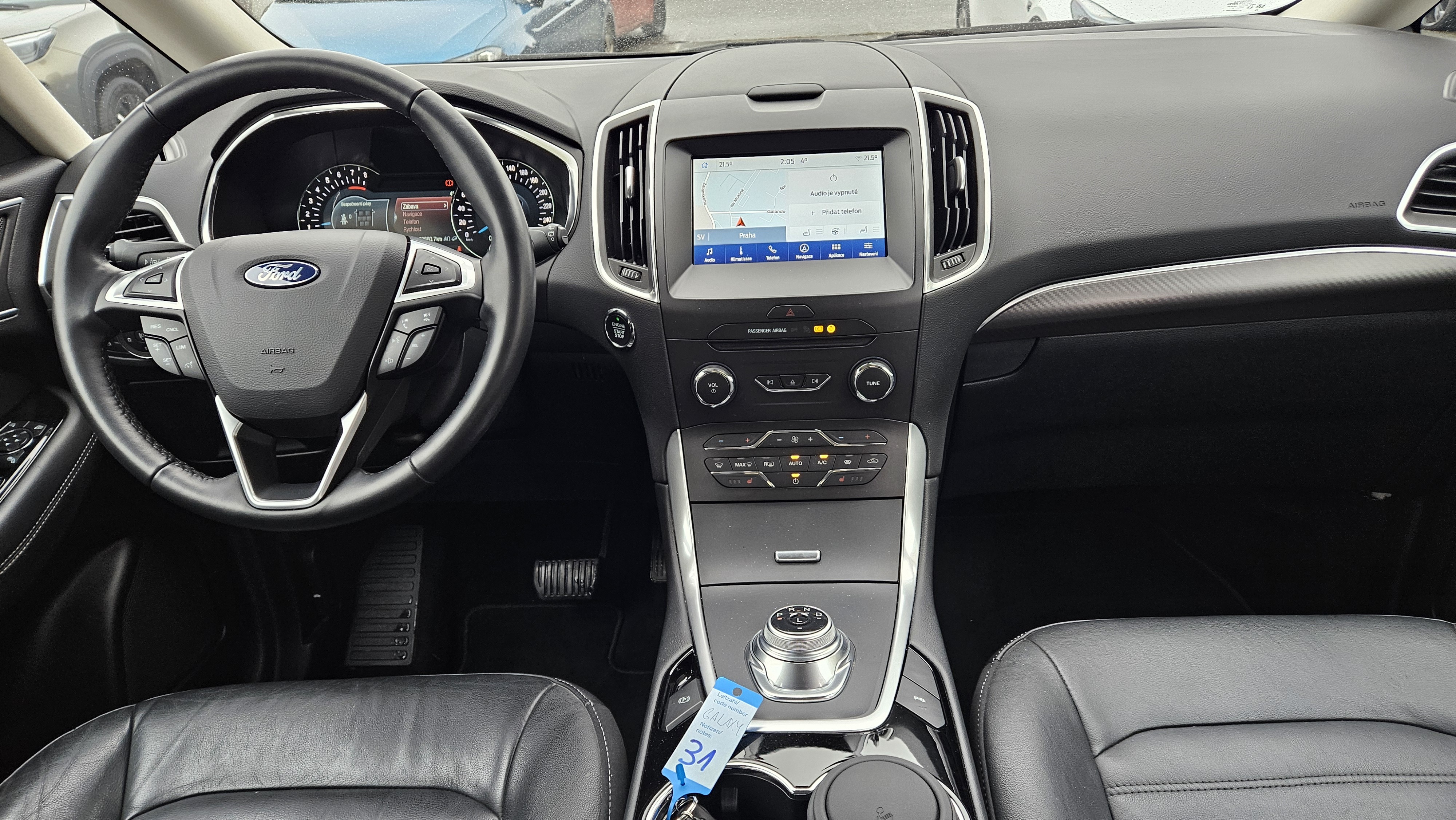 Výbava Ford Galaxy 2.5i HEV Titanium 110 kW: ABS, ESP, ASR, automatická klimatizace, automatická převodovka, sledování jízdního pruhu, asistent pro vedení vozu v jízdních pruzích, asistent rozjezdu do kopce, parkovací asistent, parkovací senzory, rozpoznávání dopravních značek, tempomat, alarm, dálkové centrální zamykání, imobilizér, palubní počítač s navigačním systémem, bezklíčkové ovládání, kožené čalounění, malý kožený paket, multifunkční vyhřívaný nastavitelný volant, nezávislé topení, posilovač řízení, vyhřívané čelní sklo, isofix, třetí řada el. sklopných sedadel, nastavení sedadla řidiče s pamětí, vyhřívaná sedadla řidiče a spolujezdce.