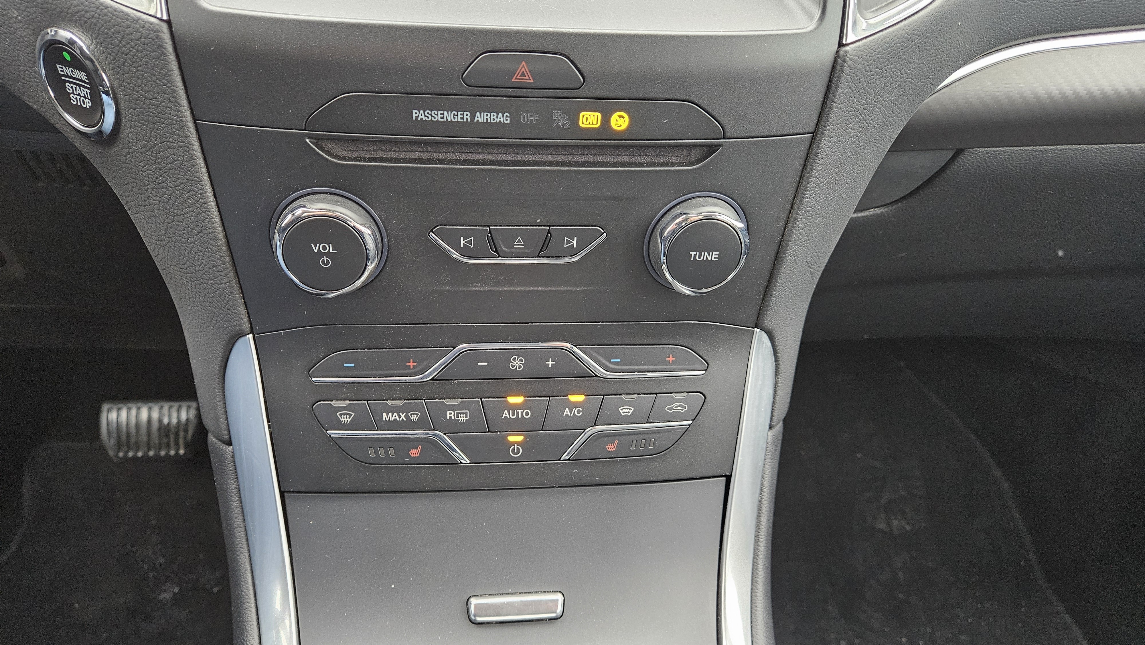 Výbava FORD GALAXY 2.5i HEV Titanium 110 kW: ABS, ESP, ASR, automatická klimatizace, automatická převodovka, sledování jízdního pruhu, asistent pro vedení vozu v jízdních pruzích, asistent rozjezdu do kopce, parkovací asistent, parkovací senzory, rozpoznávání dopravních značek, tempomat, alarm, dálkové centrální zamykání, imobilizér, palubní počítač s navigačním systémem, bezklíčkové ovládání, kožené čalounění, malý kožený paket, multifunkční vyhřívaný nastavitelný volant, nezávislé topení, posilovač řízení, vyhřívané čelní sklo, isofix, třetí řada el. sklopných sedadel, nastavení sedadla řidiče s pamětí, vyhřívaná sedadla řidiče a spolujezdce.