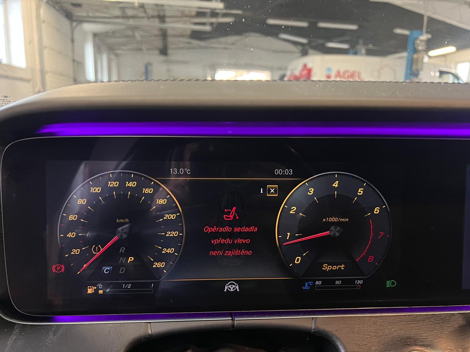 Výbava MB E 400 4MATIC 3.0 kupé 245 kW: ABS, ESP, ASR, nouzové brždění, sledování jízdního pruhu, sledování únavy řidiče, asistent rozjezdu do kopce, adaptivní tempomat, parkovací asistent a kamera, rozpoznávání dopravních značek, dálkové centrální zamykání, automatická převodovka, automatická klimatizace, multifunkční nastavitelný volant s pádly řazení, palubní počítač, satelitní navigace, apple car play, Android Auto, autorádio, vyhřívaná el. nastavitelná sedadla, paměť nastavení sedadla řidiče, kožené potahy, isofix, start/stop systém, regulace tuhosti podvozku se vzduchovým odpružením, střešní okno.