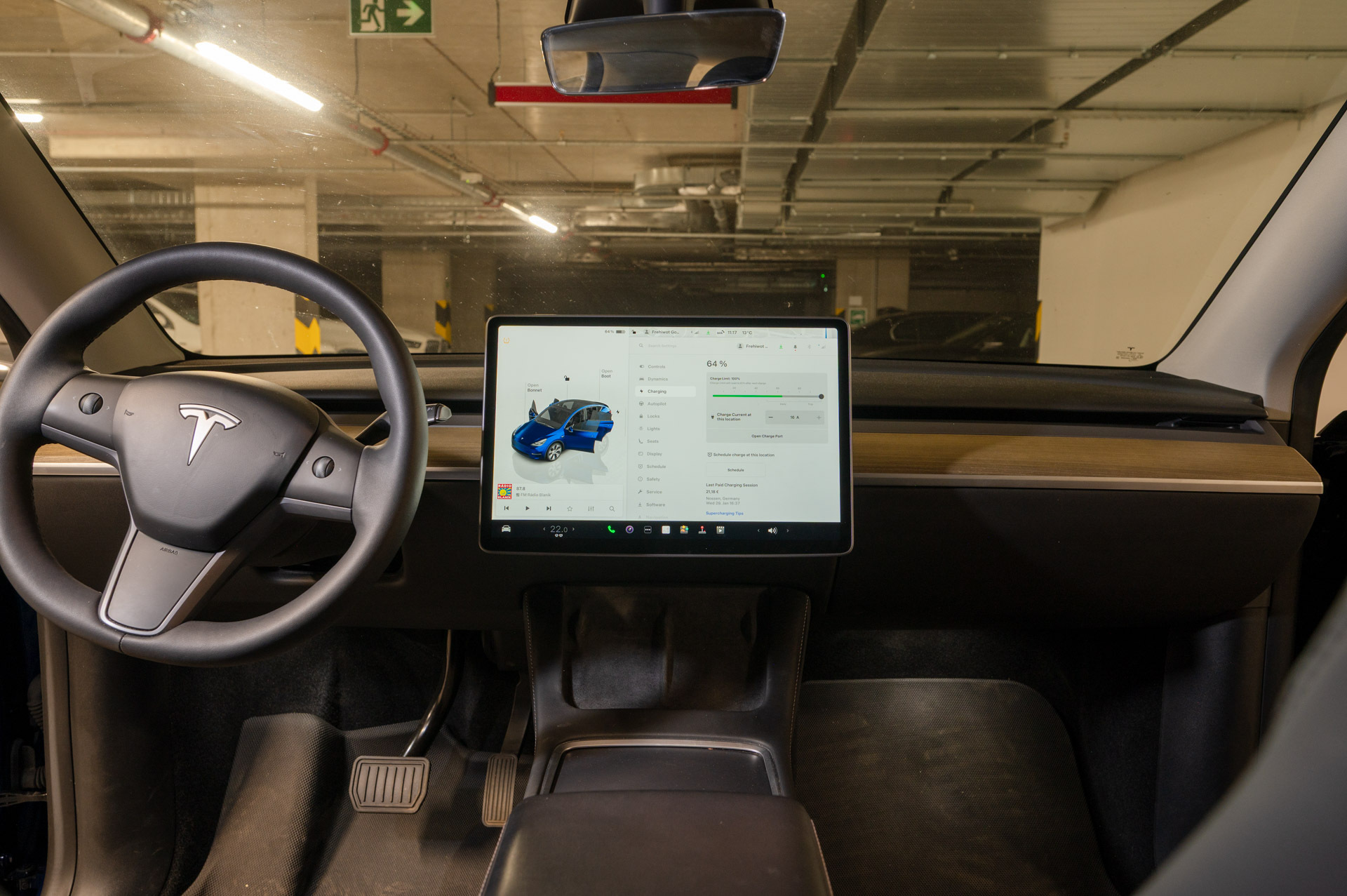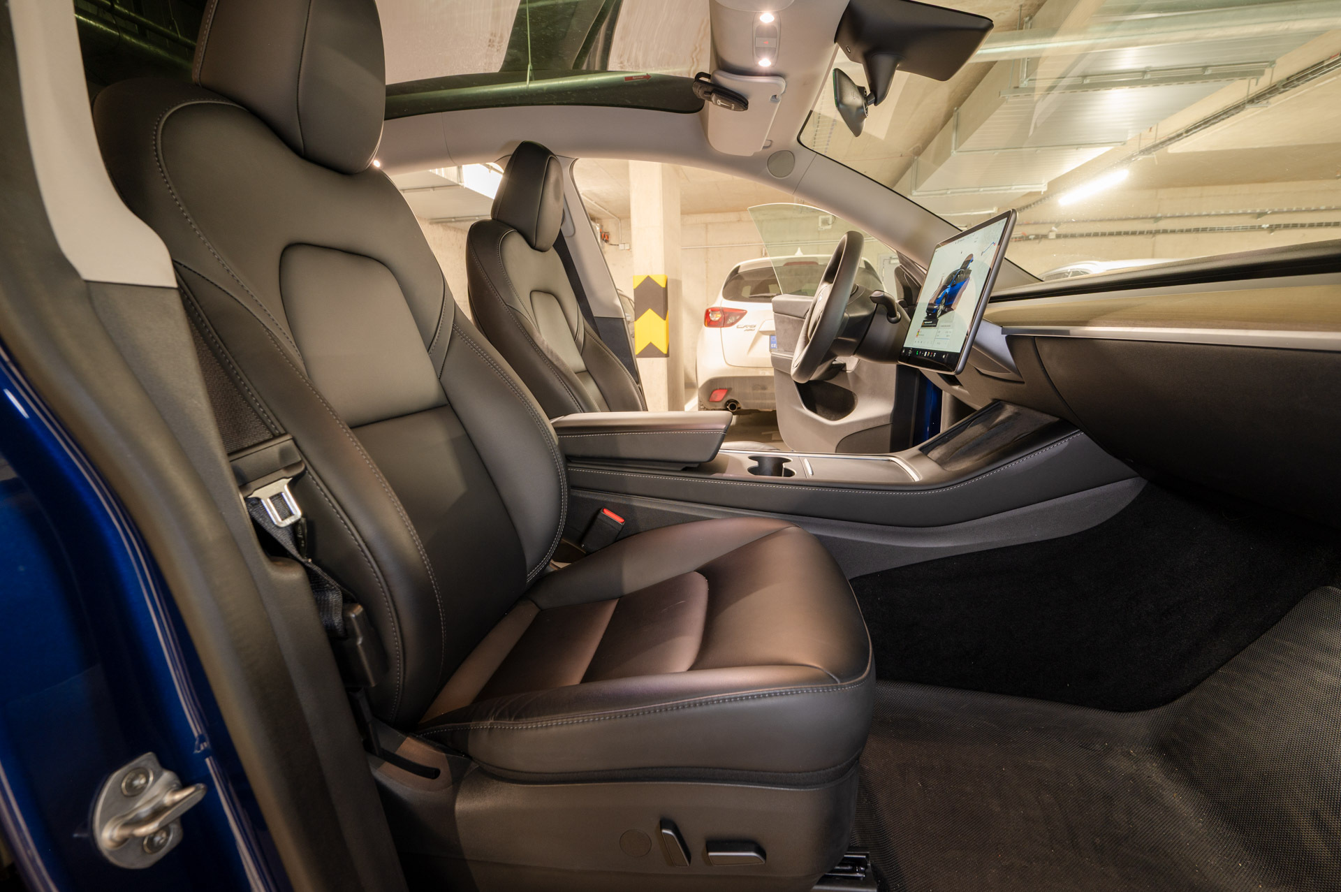 Výbava TESLA model Y Long Range: nemá aktivovaný FSD, baterie LG, ABS, ESP, ASR, nouzové brždění, sledování jízdního pruhu, asistent rozjezdu do kopce, adaptivní tempomat, parkovací asistent + senzory, rozpoznávání dopravních značek, keyless enter – 2 karty, automatická klimatizace, multifunkční nastavitelný volant, palubní počítač s hlasovým ovládáním, satelitní navigace, autorádio, nastavitelná vyhřívaná sedadla, sedadlo řidiče s pamětí, skleněná střecha.