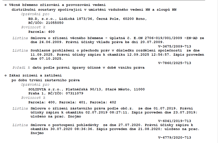 Popis práv s předmětem veřejné dražby spojených a závad na něm váznoucích, pokud ovlivňují hodnotu předmětu veřejné dražby: