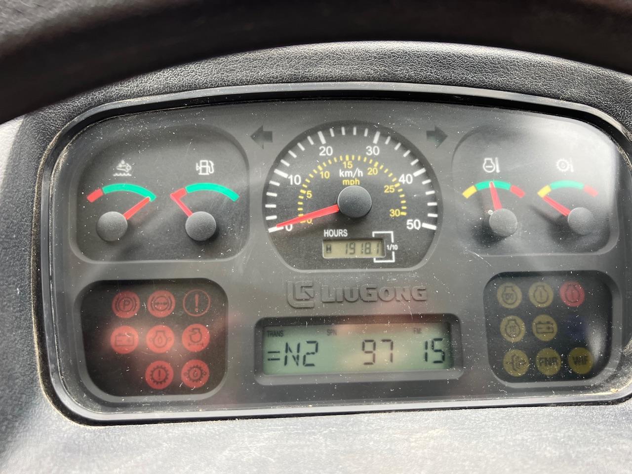 Ojetý kolový nakladač LiuGong, rok výroby 2020, výkon motoru 97,9 kW, značka motoru Perkins, Palivo NM, 3. hydraulický okruh, hydraulický rychloupínač (shodný s Volvem), 4 rychlosti vpřed a 3 vzad (max. 38,6 km/h), řazení na joysticku, centrální mazání, pneu 17,5 r25, kabina s topením a klimatizací, vzduchová vyhřívaná sedačka, rádio, led osvětlení, výška lžíce na čepu 3,7 m x výsypná výška s běžnou lopatou 2,8m, najeto 1 917 mth.